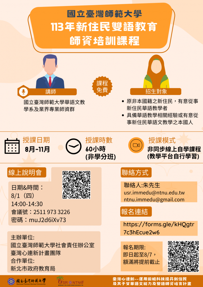 課程免費參加,採線上報名:即日起至113年8月7日止,報名額 滿將提前截止,掃 右方QR Code或填寫表單報名。