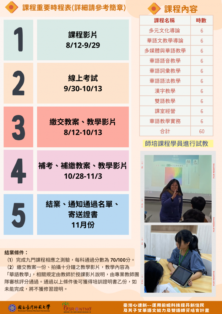 | 10 | 華語教學實務 | 6 | 透過試教檢視學生學習成效。 |
